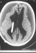 Yine şantın aşırı çalışması sonucu beyin karıncıkları çok küçülür. BT ve MRG’de karıncıklar normalden çok küçük görülür bu görüntü nedeniyle yakınmaları olan hastalardaki bu duruma “slit ventrikül sendromu” denmektedir (Resim 10).. Bu sendromda hastalar dik durduklarında diğer bir değişle oturduklarında veya ayağa kalktıklarında şiddetli baş ağrıları olmaktadır. Bazen de karıncıklar küçülüp karıncık içindeki şant tüpünün deliklerini tıkayıp sıvının akmasını engellerler. Bu nedenle beyin içinde basınç artması meydana gelir ve baş ağrısı bulantı ve kusmaya neden olabilir. Hiçbir yakınma yok iken BT ve MRG’lerde karıncıkların çok küçük, bir çizgi halinde görülmesinin bir önemi yoktur.